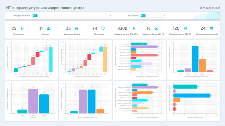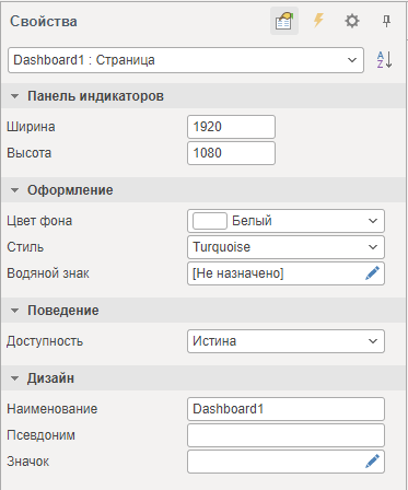 Панель индикаторов представляет собой безразмерную область, на которой размещаются элементы анализа данных. Все элементы размещенные на панели индикаторов могут быть взаимосвязаны между собой или разделены на группы взаимосвязанных элементов. Создается панель индикаторов в редакторе отчетов, а просмотр доступен во вкладке Просмотр