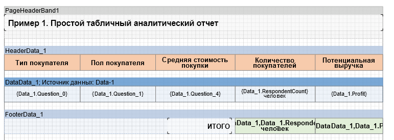 Один источник данных может указывать на неизвестное заранее количество строк с данными. Блок Данные выводится столько раз, сколько строк в указанном источнике данных.