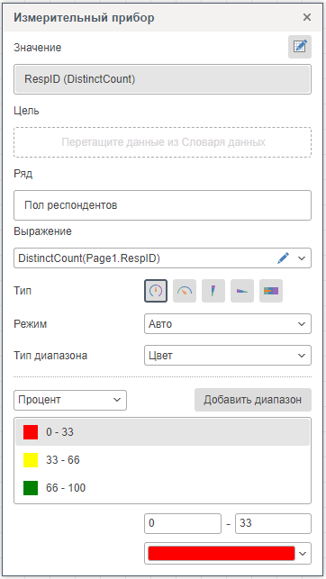 Ряд измерительного прибора - это отдельный графический элемент для определенного сегмента значений, выбранных по заданным условиям. Условием в этом случае будут значения поля данных, которое указано в поле Ряды.
