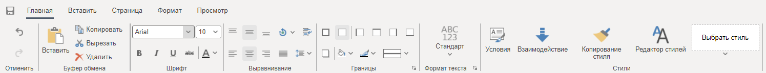 Вкладка Главная - это вкладка панели дизайнера отчетов, на которой расположены основные команды настройки компонентов отчета и элементов панели индикаторов.