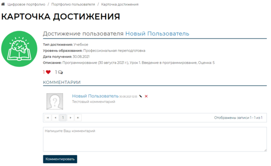 Карточка достижения