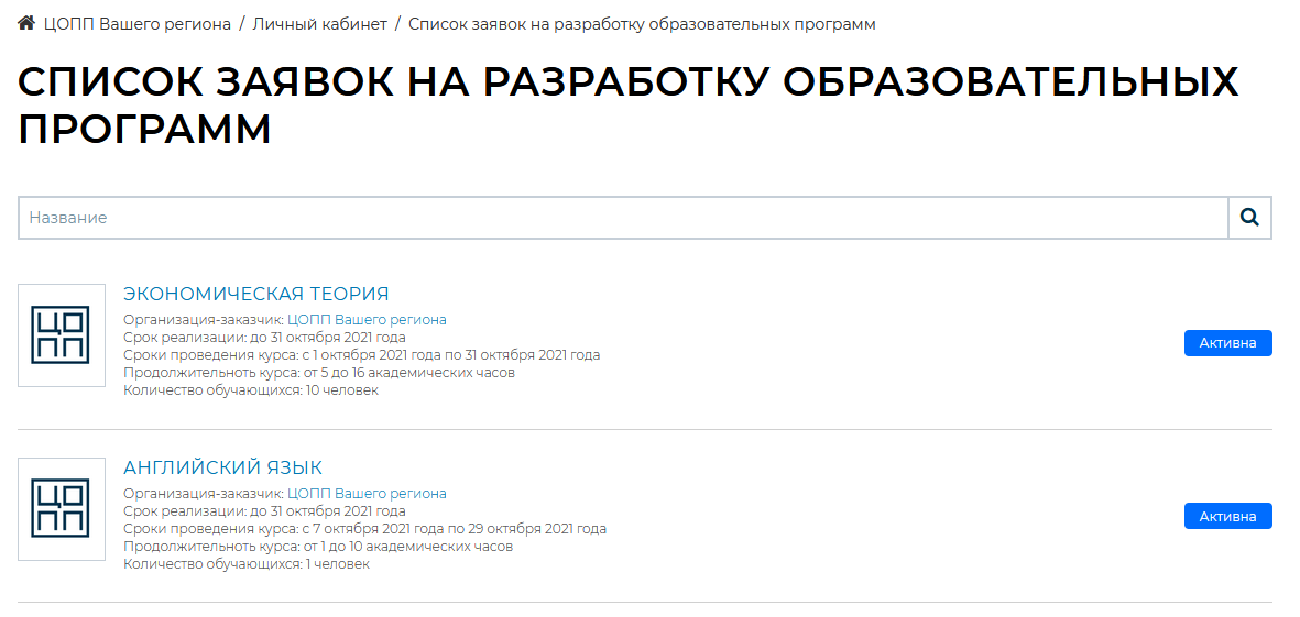 Каталог активных заявок на разработку образовательных программ