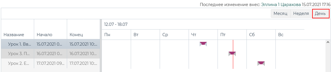 на диаграмме Ганта, соответствующему уроку.