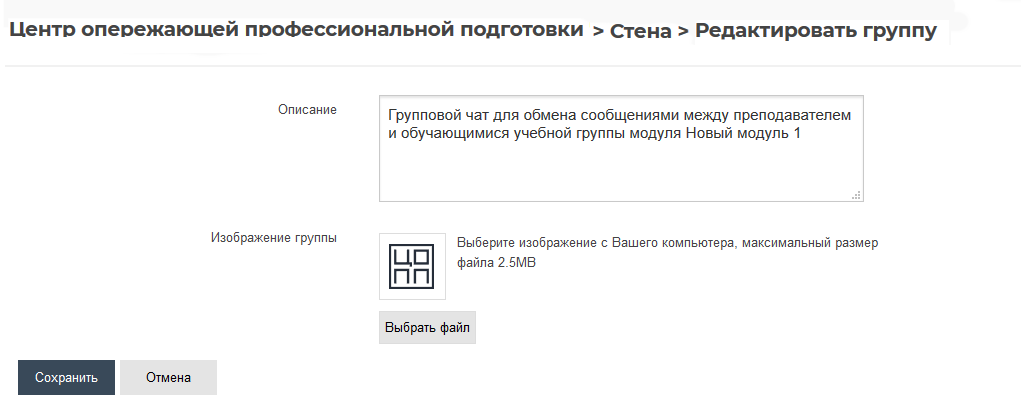 Для того, чтобы изменить описание группы или изменить изображение группы, необходимо нажать на кнопку