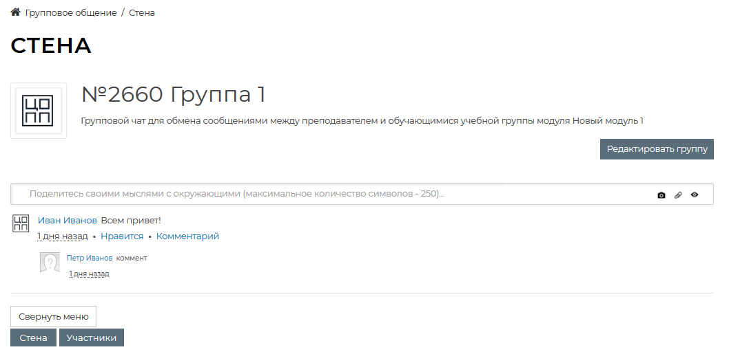 Чтобы внести изменения в группу, необходимо нажать на кнопку