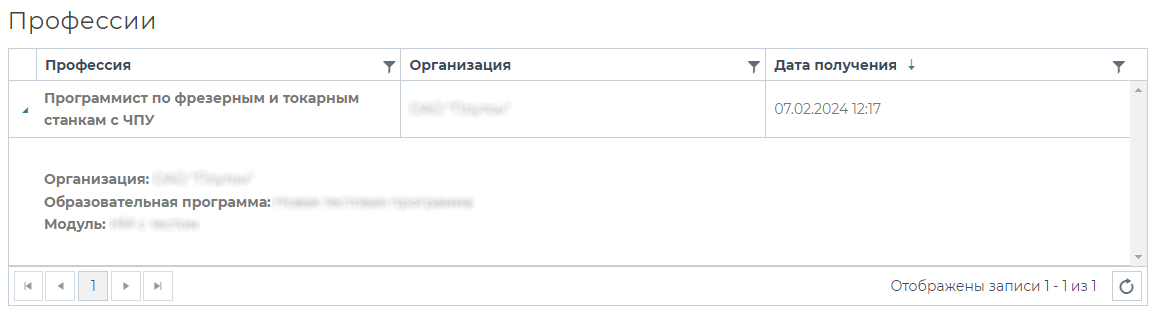 Также обучающемуся присваивается профессия после прохождения обучения. Для подробного просмотра профессии необходимо нажать на стрелку