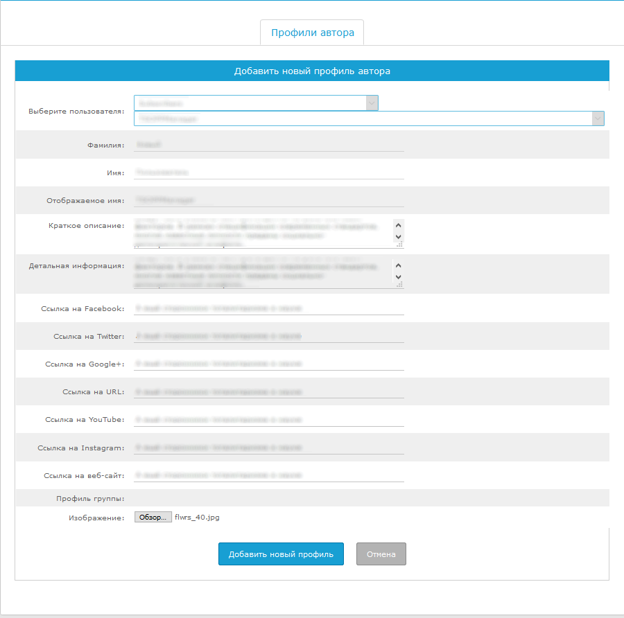 Заполненный профиль автора статей
