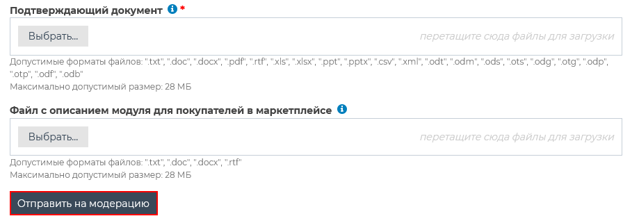 Расположение кнопки [Отправить на модерацию]