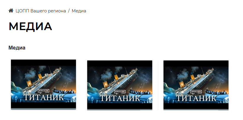 EasyDNNGallery добавлен в раздел галереи - пункт Медиа. Просмотр медиа-файлов доступен для всех ролей пользователей, редактирование контента – Модератору, редактирование настроек - Администратору платформы ЦОПП.