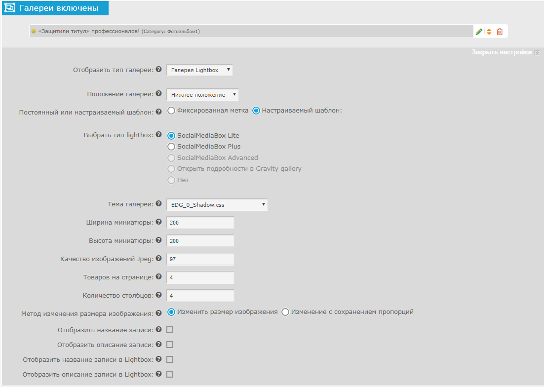 Для работы с галереей необходимо её настроить непосредственно при создании самой новостной статьи.