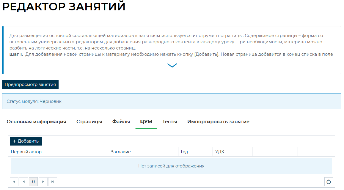 Для прикрепления к уроку цифровых учебных материалов необходимо перейти на вкладку «ЦУМ» и нажать кнопку [Добавить].
