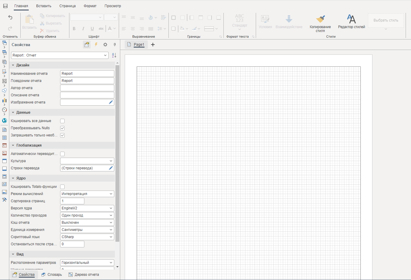 После этого, в дизайнере отчетов будет отображен получившийся отчет. Результат доступен во вкладке Просмотр.