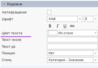 При настройке оформления можно изменить и цвет текста определенного элемента.