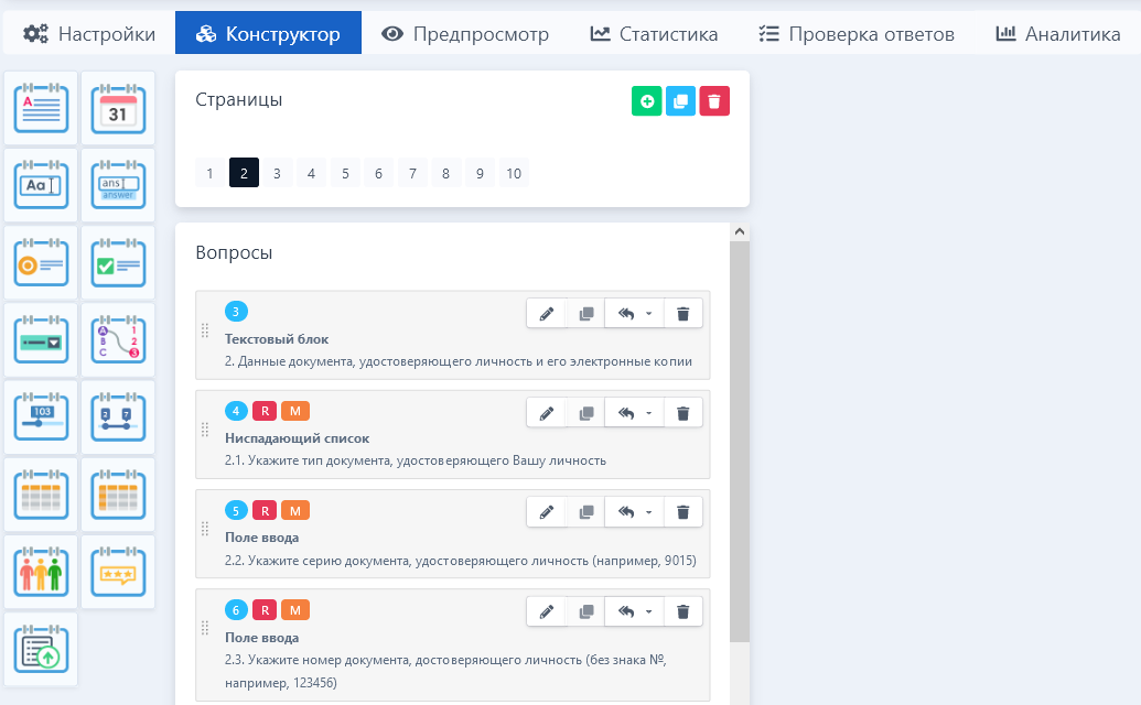 Управление вопросами анкеты