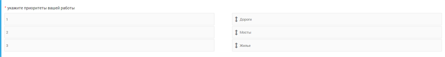 Данный тип вопроса применяется для упорядочивания информации, согласно заданным в вопросе критериям, т.е. респонденту предлагает сопоставить несколько элементов между собой.